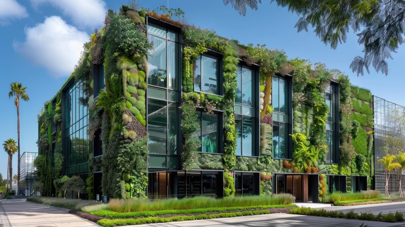 Photo: Sustainable building using recycled materials, green living walls and water-saving systems (Source: © Si Le / Dreamstime)